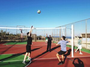 Ο Ομοσπονδιακός Προπονητής μίλησε για τα ιδιαίτερα χαρακτηριστικά του Βόλεϊ, εξήγησε τους κανόνες του παιχνιδιού και μέσα από κινητικές δραστηριότητες είχαν την ευκαιρία να συμμετάσχουν βιωματικά, γνωρίζοντας βασκικές δεξιότητες του αθλήματος.