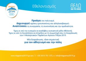 Στο παρακάτω link της αίτησης εθελοντισμού για τους Παράκτιους Μεσογειακούς Αγώνες που θα πραγματοποιηθούν στην πόλη της Πάτρας: