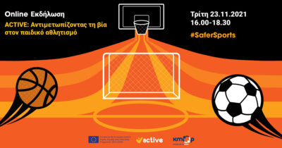 Την Τρίτη 23 Νοεμβρίου (16.00-18.30) θα πραγματοποιηθεί η διαδικτυακή ημερίδα  με θέμα ΑCTIVE  ¨Αντιμετωπίζοντας τη βία στον παιδικό Αθλητισμό¨, που διοργανώνει το KMOΠ – Κέντρο Κοινωνικής Δράσης και Καινοτομίας.