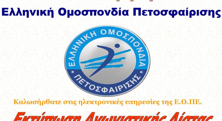 Θα θέλαμε να σας υπενθυμίσου, ότι θα πρέπει να τυπώσετε τις αγωνιστικές λίστες του σωματείου σας μέχρι τις 31/5/2020, για να συμμετάσχετε στις αγωνιστικές υποχρεώσεις των πρωταθλημάτων Κ-18 Αγοριών και Κοριτσιών, καθώς και ομάδες που έχουν προκριθεί στην τελική φάση του Κ-20 Κοριτσιών ή Κ-21 Αγοριων.