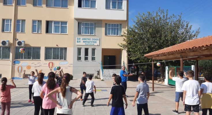 O περιφερειακός oμοσπονδιακός τεχνικός Γιώργος Χριστόπουλος επισκέφτηκε το 54ο Δημοτικό σχολείο Πάτρας, μετά από πρόσκληση του σχολείου και στο πλαίσιο του προγράμματος της Ε.Ο.ΠΕ. «παρουσίασης-διδασκαλίας του Βόλεϊ στα σχολεία».