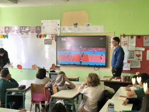 Οι μαθητές και μαθήτριες του Σχολείου με τις οδηγίες του προπονητή είχαν την ευκαιρία να παρακολουθήσουν ένα ευχάριστο πρόγραμμα εκμάθησης των τεχνικών στοιχείων του Αθλήματος στο γήπεδο του Σχολείου και να ενημερωθούν για το άθλημα της πετοσφαίρισης παρακολουθώντας σχετικό οπτικοακουστικό υλικό.