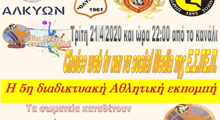 Πραγματοποιήθηκε η 5η αθλητική διαδικτυακή εκπομπή #ΕΣΠΕΠ Voice την Τρίτη 21/4/2020 στον αέρα του διαδικτύου, με προσκεκλημένους στην εκπομπή τους προπονητές των ομάδων του πρωταθλήματος Γυναικών ERREA sports By Spot Team, όπου δίνουν αγώνα αποφυγής του υποβιβασμού.