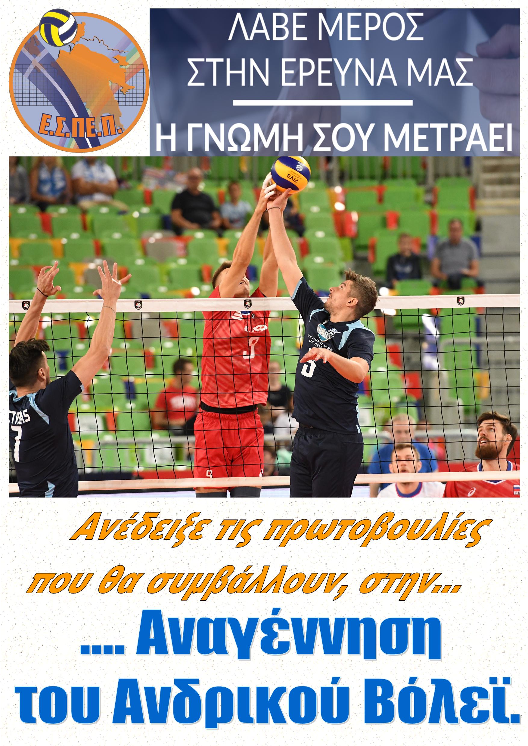 Σήμερα σας παρουσιάζουμε το ερωτηματολόγιο με το οποίο ο καθένα μπορεί και επίσημα, να καταθέσει την άποψή του συμμετέχοντας ενεργά στον διάλογο που θα διεξαχθεί, για την «Αναγέννηση του Ανδρικού Βόλεϊ».