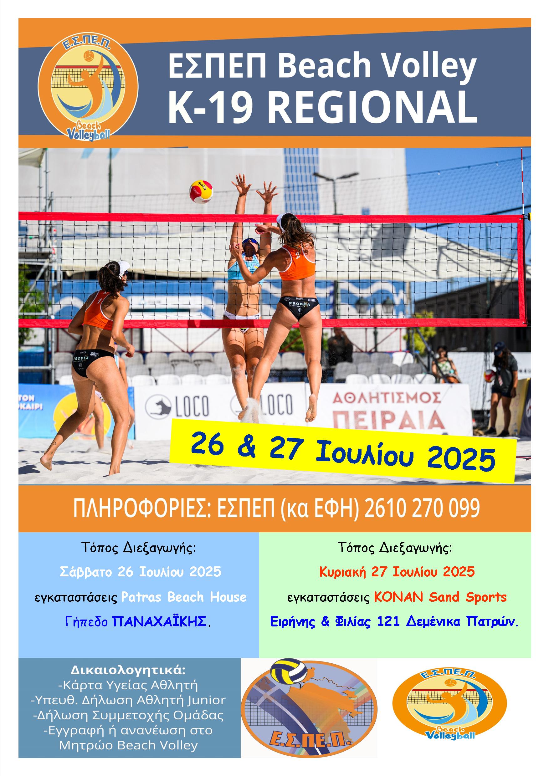 Με 9 ομάδες Αγοριών και 16 ομάδες Κοριτσιών θα διεξαχθεί το Κ-19 Juniors Regional  2024 της Ε.Σ.ΠΕ.Π. το Σαββατοκύριακο 26 & 27 Ιουλίου 2025.