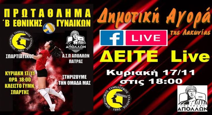 Πρωταθλήματα ΘηλέωνLIVE από την ΔΗΜΟΤΙΚΗ ΑΓΟΡΑ της Λακωνίας τον αγώνα ΣΠΑΡΤΙΑΤΙΚΟΣ ΓΣ – ΑΠΟΛΛΩΝ ΠΑΤΡΩΝ. 17/11/2019 - από Theodoros Kanellopoulos - Αφήστε ένα σχόλιο